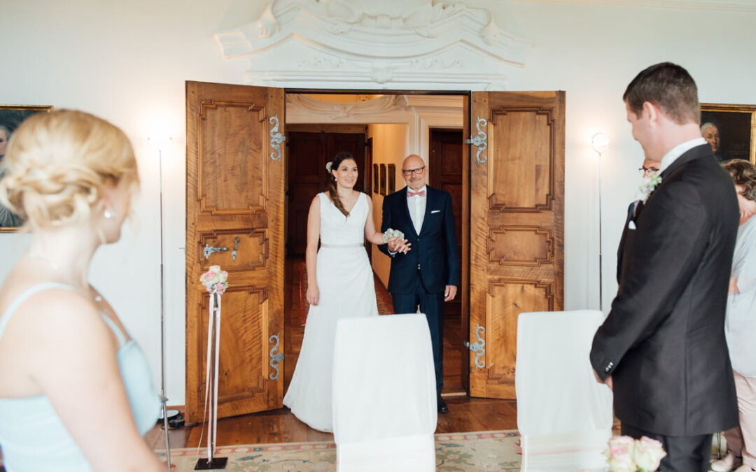 Braut mit Vater Hochzeit Schloss Heidegg